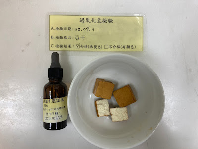 二、依據所使用之快速檢驗試劑之操作說明,實驗操作後不變色者,表示樣品過氧化氫含量為0 mg/L Peroxide,樣品檢驗合格。